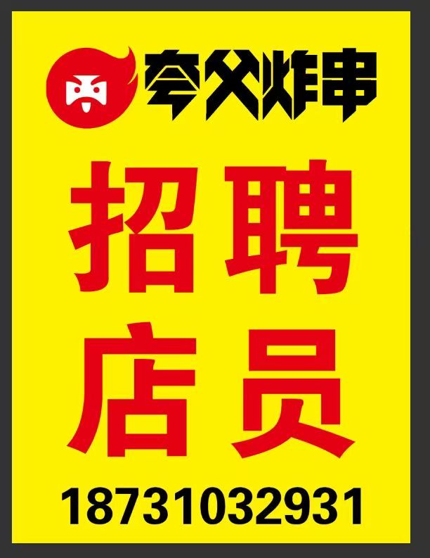 夸父炸串招聘店员,要求长期,工资面议,地址红星美凯龙广悦天街