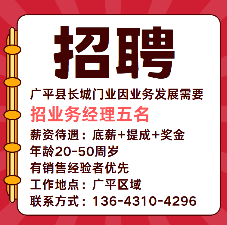 广平县长城门业因业务发展需要,