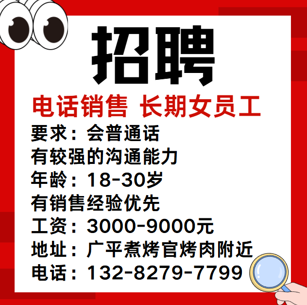 招聘:电话销售长期女员工