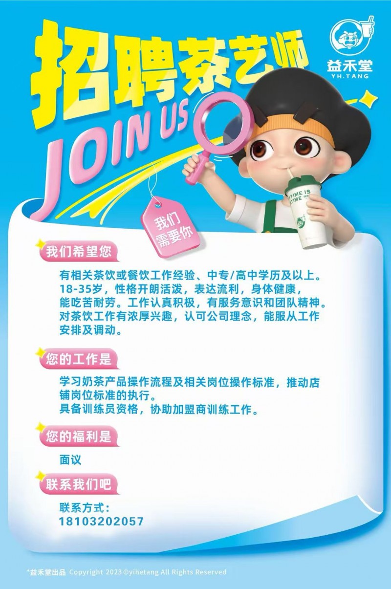 益禾堂奶茶店招聘啦 待遇优厚,有工作经验者、长期优先。 全新工资制度1800-4000,多劳多得 工作地点:广平县城 年龄18~35周岁