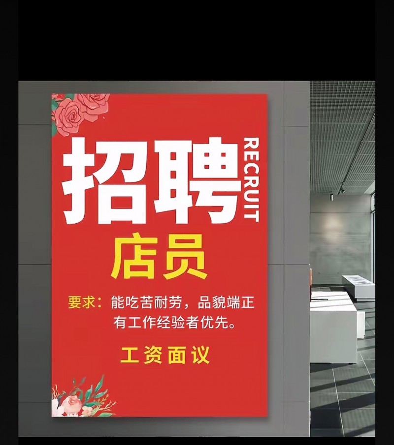 招聘店员 基本工资➕全勤部分时间有提成要长期合适会涨工资,地址:广平县枫美·缔景城(人民西路)