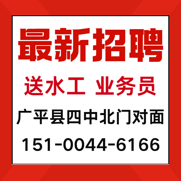 送水处招聘业务员,地址:广平县四中北门对面
